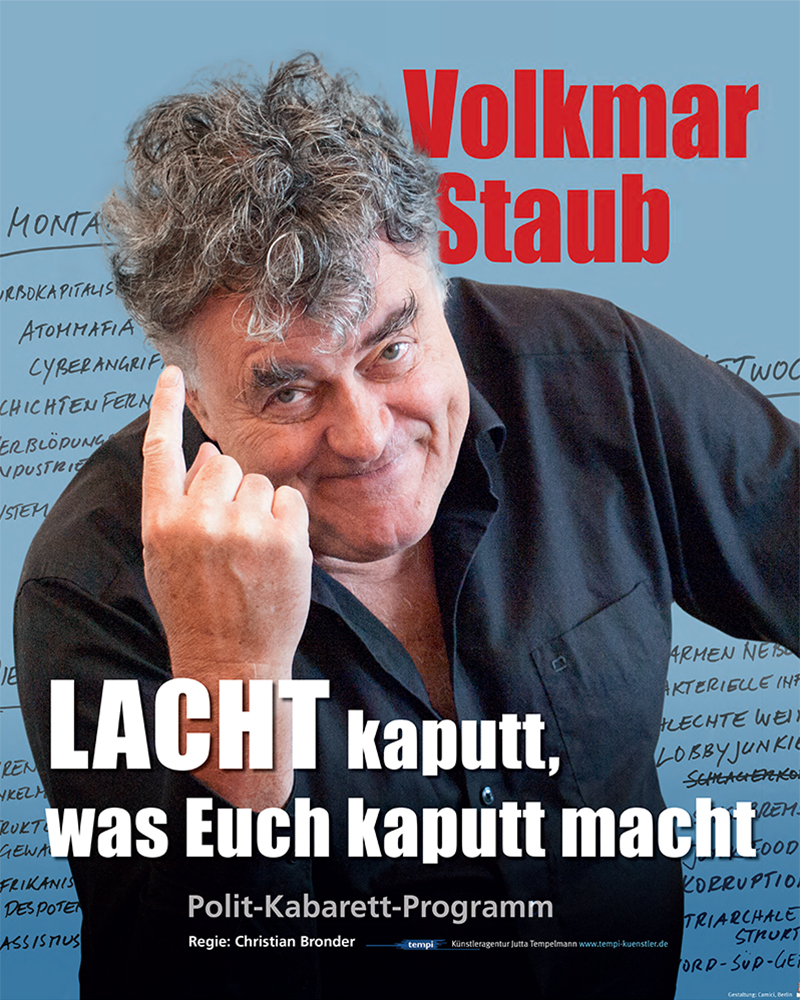 Nach Anfängen als Liedermacher war Volkmar Staub Mitgründer und Mitglied des legendären Freiburger Anarcho-Szenekabaretts »Riebyse und Buurepunk«, danach beim Kabarett-Trio »DIN A DRY« mit den Programmen »Wer sich nicht lebt, wehrt sich verkehrt« (1984) und »Scherzflimmern« (1986).